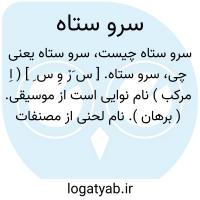 سرو ستاه. [ س َرْ وِ س ِ ] ( اِ مرکب ) نام نوایی است از موسیقی. ( برهان ). نام لحنی از مصنفات باربد است. رشیدی گفته همان سروستان است. ( آنندراج ):