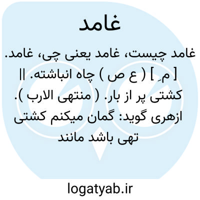غامد. [ م ِ ] ( ع ص ) چاه انباشته. || کشتی پر از بار. ( منتهی الارب ). ازهری گوید: گمان میکنم کشتی تهی باشد مانند حفانة. ( از تاج العروس ).