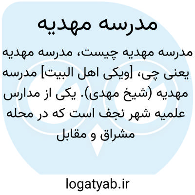 [ویکی اهل البیت] مدرسه مهدیه (شیخ مهدى). یکی از مدارس علمیه شهر نجف است که در محله مشراق و مقابل مقبره علامه سید مهدی بحرالعلوم و شیخ طوسی و در مجاورت مدرسه قوام واقع شده است.