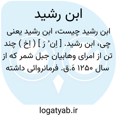 ابن رشید. [ اِن ُ رَ ] ( اِخ ) چند تن از امرای وهابیان جبل شمر که از سال 1250 هَ.ق. فرمانروائی داشته اند باین کنیت مشهورند. نخستین آنها عبداﷲبن رشید است و نام افراد این خاندان که امارت یافته اند بدین قرار است: عبداﷲبن رشید ( 1250 - 1263 ). طلال بن عبداﷲ ( 1263-1283 ). متعب بن عبداﷲ ( 1283 -1285 ). بندربن طلال بن عبداﷲ ( 1285 ).محمدبن عبداﷲ ( 1285-1315 ). عبدالعزیزبن متعب ( 1315 -1324 ). متعب بن عبدالعزیز ( 1324 ). سلطان بن حمود ( 1326 ). مسعودبن حمود ( تنها چند ماه ). سعود ( از 1326 ).