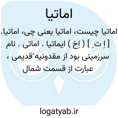 اماتیا. [ اِ ت ِ ] ( اِخ ) ایماتیا. اماتی. نام سرزمینی بود از مقدونیه ٔقدیمی، عبارت از قسمت شمال غربی قطعه مزبور، و مرکزش اوسه نام داشت و در محل مقدونیه حالیه واقع شده بود. گاهی این اسم به تمام قطعه مقدونیه نیز اطلاق میشود. این کلمه در زبان آرناودی ( آلبانی ) معنی «خطه ٔبزرگ » میدهد و اینان از نظر جنسیت نژادی با اهالی ایلیریا خویشاوندی داشتند، و از این رو معلوم میشود که اهالی مقدونیه قدیم وسعت آفاق و طول و عرض صحاری و عرصات میهن خویش را منظور نظر قرار داده به این نامش خوانده اند و ناحیه ماط واقع در آلبانی نیز از حیث اشتقاق با این کلمه مناسبتی دارد. ( از قاموس الاعلام ترکی ج 2 ). مرکز اماتی حالیه، برویا و سکنه آن 96400 تن است. ( لاروس بزرگ ).
