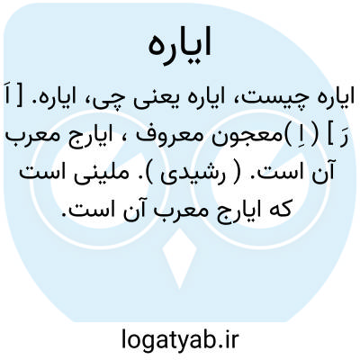 هلالش زیبد از بهر ایاره.رشیدی ( بدون ذکرنام شاعر ).|| اوارجه و آن دفتر حسابی باشد. ( آنندراج ) ( جهانگیری ). دفتر و حسابی که زرهای پراکنده دیوانی را در آن نویسند و معرب آن اوارجه است. ( برهان ). رجوع به اوارجه شود. || قدر و اندازه و مقدار. ( برهان ). به دو معنی فوق مصحف «اماره » است. رجوع به اماره و آماره شود. ( از حاشیه برهان چ معین ).