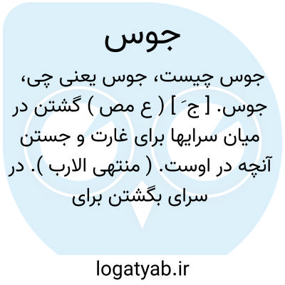 جوس. [ ج َ ] ( ع مص ) گشتن در میان سرایها برای غارت و جستن آنچه در اوست. ( منتهی الارب ). در سرای بگشتن برای غارت. ( ترجمان علامه ترتیب عادل ) ( تاج المصادر بیهقی ). || نیک جستن چیزی را. || پامال کردن. || مقهور ساختن. || کشتن بشب از دلیری. ( منتهی الارب ). رجوع به جوسان شود.