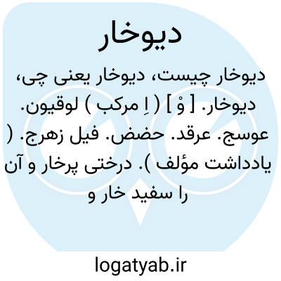 دیوخار. [ وْ ] ( اِ مرکب ) لوقیون. عوسج. عرقد. حضض. فیل زهرج. ( یادداشت مؤلف ). درختی پرخار و آن را سفید خار و خفچه گویند و بعربی عوسج خوانند. ( برهان ). درختی است پرخارو آن را سفیدخار و خفچه گویند و بعربی شجرةالجن خوانند و در اختیارات شجرةاﷲ نوشته و بعضی گویند درختی است مانند درخت کاج و شیره دارد که علاج لقوه کند. ( آنندراج ). سه گونه از این جنس در ایران هست گرگه تیغ،کام تیغ و آسه. ( یادداشت مؤلف ). بوته ای از نوع لوکیوم که در نواحی خشک میروید. ( دایرة المعارف فارسی ).گیاهی است از تیره بادنجانیان جزو دسته شابیزک ها،دارای برگهای کامل. گلهایش برنگهای سفید و بنفش کم رنگ و قرمز و صورتی و زرد دیده میشود. در حدود هفتاد گونه از این گیاه شناخته شده که همگی در نواحی معتدل و گرم میرویند. رجوع به گیاهشناسی ثابتی ص 182 شود. || سرو و صنوبر. ( ناظم الاطباء ). || ( ص مرکب ) مردم دیوانه و مصروع. ( از آنندراج ).