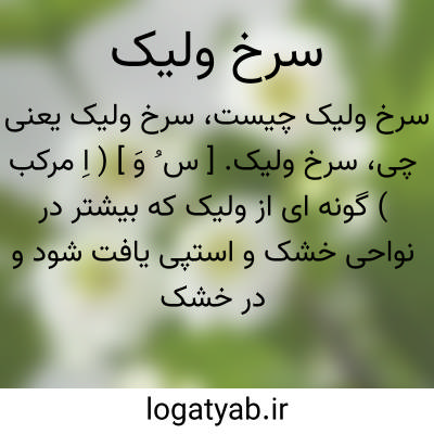 سرخ ولیک. [ س ُ وَ ] ( اِ مرکب ) گونه ای از ولیک که بیشتر در نواحی خشک و استپی یافت شود و در خشک جنگلهای خزر نیز هست ارتفاعات متوسط در کلاردشت به ارتفاع 2200گزی نیز دیده میشود در کتول سرخ ولیک گویند. رجوع به درختان جنگلی ص 187 شود.