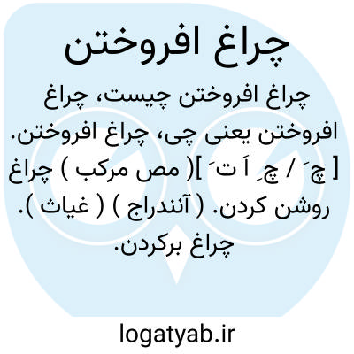 چراغ افروختن. [ چ َ / چ ِ اَ ت َ ]( مص مرکب ) چراغ روشن کردن. ( آنندراج ) ( غیاث ). چراغ برکردن. چراغ گرفتن. چراغ سوختن. ( آنندراج ) ( غیاث ). چراغ را روغن کردن. ( مجموعه مترادفات ص 116 ). روغن در چراغ کردن. ( مجموعه مترادفات ص 116 ). بعربی، «ایقاد» و «اسراج » و «اذکاء» گویند. ( مجموعه مترادفات ص 116 ). اصطباح. استصباح. ( منتهی الارب ):