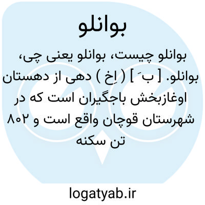 بوانلو. [ ب َ ] ( اِخ ) دهی از دهستان اوغازبخش باجگیران است که در شهرستان قوچان واقع است و 802 تن سکنه دارد. ( از فرهنگ جغرافیائی ایران ج 9 ).