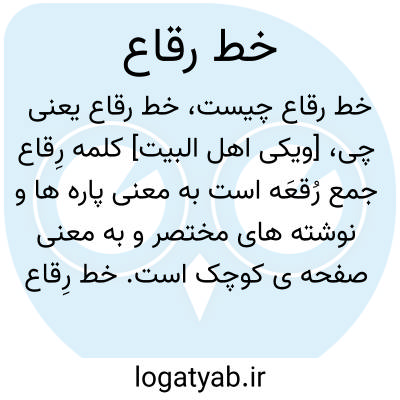 [ویکی اهل البیت] کلمه رِقاع جمع رُقعَه است به معنی پاره ها و نوشته های مختصر و به معنی صفحه ی کوچک است. خط رِقاع از جمله خطوط ششگانه در خوشنویسی اسلامی است. این خط از خط ثلث مشتق شده است، که اغلب برای مکاتبات خصوصی بر روی کاغذهایی در ابعاد کوچک و یا نگارش کتاب ها و جزوه های عرفی و غیر مذهبی و داستان ها و حکایت ها رواج داشت است. خط رقاع بر اثر نیاز به تندنویسی و مختصر نوشتن، در نامه نگاری ها بکار می رفته است. و از نظر تشابه و مقایسه با خط فارسی شبیه خط شکسته نستعلیق در مقابل خط نستعلیق است.