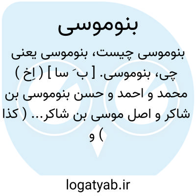 بنوموسی. [ ب َ سا ] ( اِخ ) محمد و احمد و حسن بنوموسی بن شاکر و اصل موسی بن شاکر... ( کذا ) و افراد این خاندان ازآنانند که در طلب علوم قدیمه از بذل رغائب و صلات کثیره و رنج بردن به تن خویش برای این منظور حدی ندانستند. این خاندان کسان برای نقل کتب به روم فرستادند و با بذل بی حد مال از اصقاع و اماکن مترجمین و نقله را پیش خود خواندند و از این رو به پیدایش عجایب حکمت دست یافتند و بیشتر توجه آنان بعلوم هندسه و حیل وحرکات موسیقی بود. محمدبن موسی یکی از افراد این خاندان جلیل بسال 259 هَ. ق. درگذشت. و احمدبن موسی را پسری است موسوم به مطهر که از ندمای معتضد خلیفه بود. و از کتب این خاندان است: کتاب بنی موسی فی الفرستون. کتاب الحیل و آن از احمدبن موسی است. کتاب الشکل المدور المستطیل و آن از حسن بن موسی است. کتاب حرکة الفلک الاولی و آن از محمدبن موسی است. و کتاب مخروطات و کتاب ثلث نیز از او است. و هم او راست: کتاب الشکل الهندسی الذی بین جالینوس امره. و نیز کتاب الجزه از محمد است. و کتاب بین فیه بطریق و مذهب هندسی انه لیس فی خارج کرةالکواکب الثابته کرة تاسعة و آن احمدبن موسی راست. و نیز او راست: کتاب المسألة التی القاها علی سندبن علی بن احمد موسی و کتاب مساحةالاکر و قسمة الزوایا بثلاثة اقسام متساویة و وضع مقدار بین مقدارین لیتوانی علی قسمة واحده. ( از ابن الندیم ).