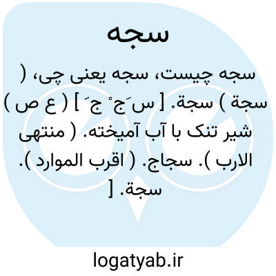 ( سجة ) سجة. [ س َج ْ ج َ ] ( ع ص ) شیر تنک با آب آمیخته. ( منتهی الارب ). سجاج. ( اقرب الموارد ).