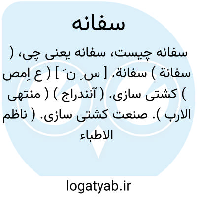 ( سفانة ) سفانة. [ س ِ ن َ ] ( ع اِمص ) کشتی سازی. ( آنندراج ) ( منتهی الارب ). صنعت کشتی سازی. ( ناظم الاطباء ).