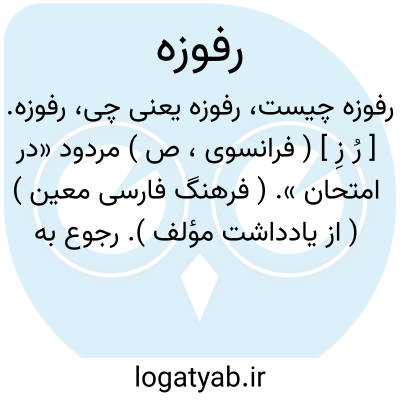 رفوزه. [ رُ زِ ] ( فرانسوی، ص ) مردود «در امتحان ». ( فرهنگ فارسی معین ) ( از یادداشت مؤلف ). رجوع به رفوزه شدن و رفوزه کردن شود.