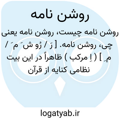 روشن نامه. [ رَ / رُو ش َ م َ / م ِ ] ( اِ مرکب ) ظاهراً در این بیت نظامی کنایه از قرآن کریم است. روشن کتاب: