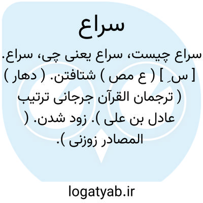 سراع. [ س ِ ] ( ع مص ) شتافتن. ( دهار ) ( ترجمان القرآن جرجانی ترتیب عادل بن علی ). زود شدن. ( المصادر زوزنی ).