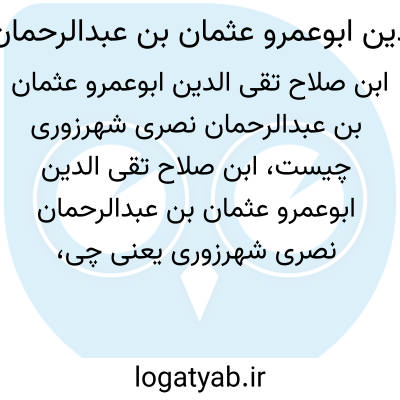 [ویکی فقه] اِبْن ِ صَلاح، تقی الدین ابوعمرو عثمان بن عبدالرحمان بن عثمان ابن موسی بن ابی نصر نصری شَهرزوری (۵۷۷ -۶۴۳ق / ۱۱۸۱- ۱۲۴۵م ) محدث، مفسر و فقیه شافعی است.
