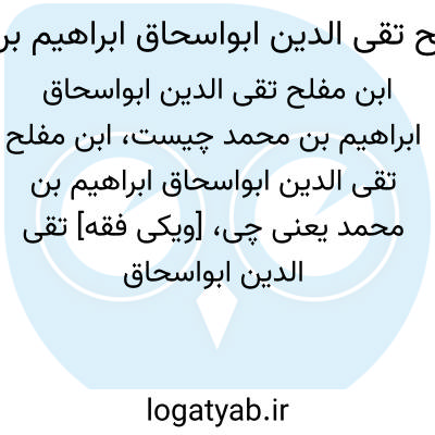 [ویکی فقه] تقی الدین ابواسحاق ابراهیم بن محمد، یکی از شخصیت های خاندان اِبْن ِ مُفْلِح، می باشد؛ ابن مفلح نام افراد خاندانی از فقیهان حنبلی دمشق که در سده های ۸ -۱۱ق /۱۴-۱۷م دارای مقامات علمی و اجتماعی بوده اند. از نسبت رامینی و قانونی برای افراد این خاندان چنین برمی آید که اصل خاندان به فلسطین باز می گردد.