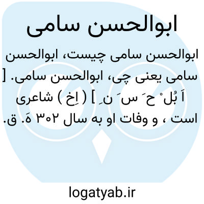 ابوالحسن سامی. [ اَ بُل ْ ح َ س َ ن ِ ] ( اِخ ) شاعری است، و وفات او به سال 302 هَ. ق. بود. ( ابن الندیم ).