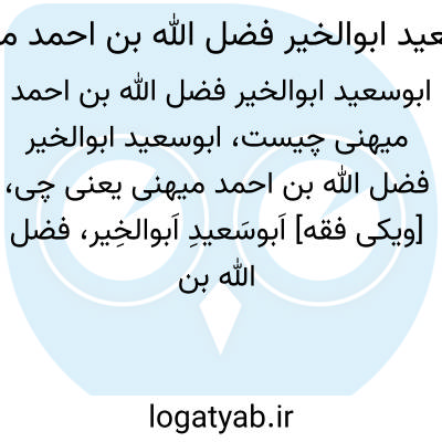 [ویکی فقه] اَبوسَعیدِ اَبوالخِیر، فضل الله بن احمد بن محمد بن ابراهیم میهنی (اول محرم ۳۵۷ ـ ۴ شعبان ۴۴۰ق/ ۷ دسامبر ۹۶۷ ـ۱۲ژانویه ۱۰۴۹م)، عارف بنام خراسانی، منسوب به میهنه، از قرای مشهور خاوران در میانه سرخس و ابیورد است.