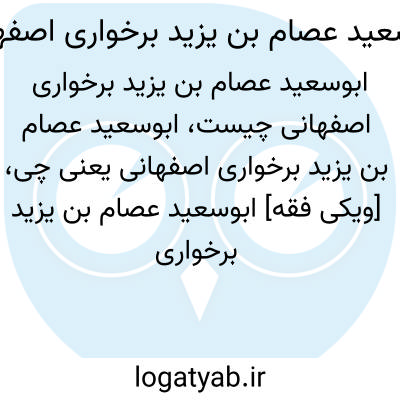 [ویکی فقه] ابوسعید عصام بن یزید برخواری اصفهانی، از محدّثین عامّه اصفهان در قرن دوم هجری بوده است.