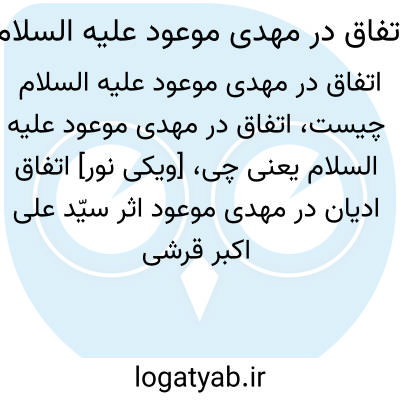 [ویکی نور] اتفاق ادیان در مهدى موعود اثر سیّد على اکبر قرشى است که به زبان فارسى پیرامون دلالت مطالب و احادیثى در اتفاق ادیان مختلف بر این که تمامى ادیان الهى بر آمدن شخصى در آخرالزمان و اجراى عدالت همگانى، بحث مى کند و به اثبات آن مى پردازد.