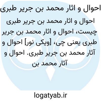 [ویکی فقه] احوال و آثار محمد بن جریر طبری (کتاب). «احوال و آثار محمد بن جریر طبری» تالیف علی اکبر شهابی به زبان فارسی که در سال ۱۳۱۴ ه-. ش به رشته تحریر در آمده است.