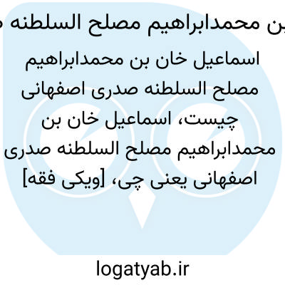[ویکی فقه] اسماعیل خان بن محمدابراهیم مصلح السلطنه صدری اصفهانی، از شعرا و ادبای اصفهان در قرن چهارده هجری بوده است.
