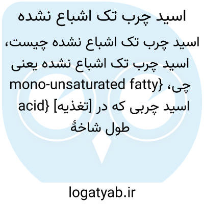 {mono-unsaturated fatty acid} [تغذیه] اسید چربی که در طول شاخۀ اصلی خود فقط یک پیوند دوگانه دارد