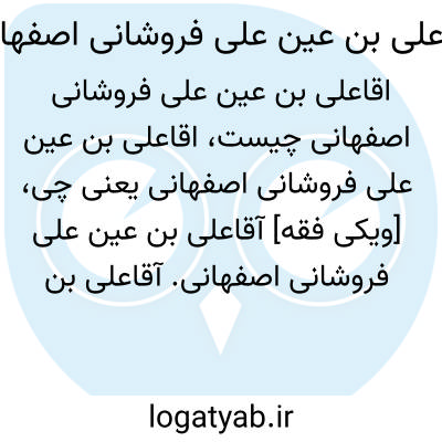 [ویکی فقه] آقاعلی بن عین علی فروشانی اصفهانی. آقاعلی بن عین علی فروشانی اصفهانی، از شعرا و سخنوران قرن یازدهم هجری در اصفهان بوده است.