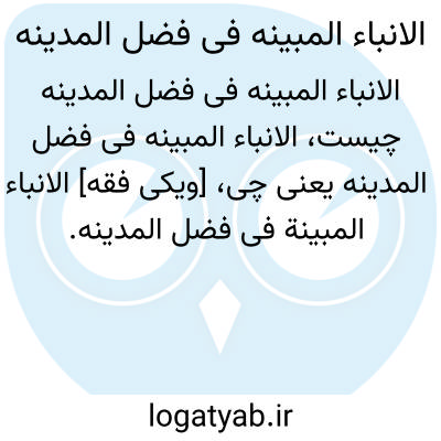[ویکی فقه] الانباء المبینة فی فضل المدینه کتابی گم شده در تاریخ محلی و فضیلت های مدینه، نوشته قاسم ابن عساکر شافعی (م. ۶۰۰ق.)است.
