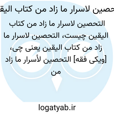 [ویکی فقه] التحصین لاسرار ما زاد من کتاب الیقین (کتاب). التحصین لاسرار ما زاد من اخبار کتاب الیقین نوشته سید علی بن طاووس حسینی حلی، متوفای ۶۶۴ هجری است.