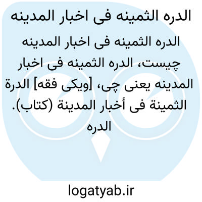 [ویکی فقه] الدره الثمینه فی اخبار المدینه (کتاب). الدره الثمینه فی الاخبار المدینه تالیف ابن نجار بغدادی متوفی سال (۶۴۳- ۵۷۸ ق) است، که درباره ی تاریخ شهر مدینه و نواحی و اماکن مختلف آن، همچنین صحابه ی پیامبر اکرم صلی الله علیه و آله وسلّم، می باشد. کتاب به زبان عربی است و در یک جلد به چاپ رسیده است.