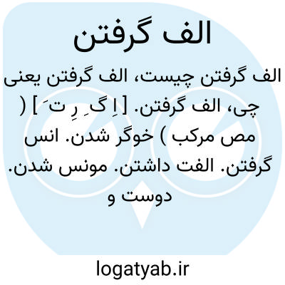 الف گرفتن. [ اِ گ ِ رِ ت َ ] ( مص مرکب ) خوگر شدن. انس گرفتن. الفت داشتن. مونس شدن. دوست و همدم گردیدن: موءالفة؛ الف گرفتن. ( تاج المصادر بیهقی ): شیر... با او الفی تمام گرفت. ( کلیله و دمنه ).