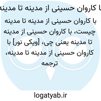 [ویکی نور] با کاروان حسینی از مدینه تا مدینه، ترجمه کتاب «مع الرکب الحسینی من المدینة إلی المدینة»، اثر جمعی از پژوهشگران و نویسندگان معاصر به نام های علی الشاوی، شیخ نجم الدین طبسی، شیخ محمدجواد طبسی، شیخ عزت‏ اللَّه مولایی، شیخ محمدجعفر طبسی و شیخ محمدامین ‏پور امینی است که توسط عبدالحسین بینش به فارسی برگردانده شده است.