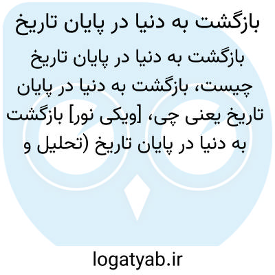 [ویکی نور] بازگشت به دنیا در پایان تاریخ (تحلیل و بررسی مسئله رجعت). «بازگشت به دنیا در پایان تاریخ (تحلیل و بررسی مسئله رجعت)» اثر خدامراد سلیمیان، پژوهشی است درباره رجعت و بازگشت برخی مردگان مؤمن و کافر، بعد از ظهور امام زمان(ع) که به زبان فارسی و در سال 1349ش نگارش یافته است.
