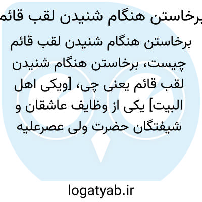 از امام صادق علیه السلام سؤال شد: چرا به هنگام شنیدن نام «قائم» باید برخیزیم؟ فرمود: «برای آن حضرت غیبت طولانی ای هست و این لقب یادآور دولت حقه آن حضرت و ابراز تأسف بر غربت او است. لذا آن حضرت از شدت محبت و مرحمتی که به دوستانش دارد به هر کس که حضرتش را با این لقب یاد کند، نگاه محبت آمیز می کند. از تجلیل و تعظیم آن حضرت است که هر بنده خاضعی در مقابل صاحب عصر خود - هنگامی که مولای بزرگوارش به سوی او بنگرد - از جای برخیزد. پس باید برخیزد و تعجیل در امر فرج مولایش را از خداوند مسألت نماید».