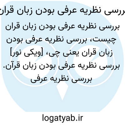 [ویکی فقه] بررسی نظریه عرفی بودن زبان قرآن (کتاب). «بررسی نظریه عرفی بودن زبان قرآن» در این نوشتار که نوشتاری است از خانم ناهید دامن پاک مقدم که به بحث و بررسی درباره نظریه «عرفی بودن زبان قرآن» از منظر زبان شناختی پرداخته شده است.