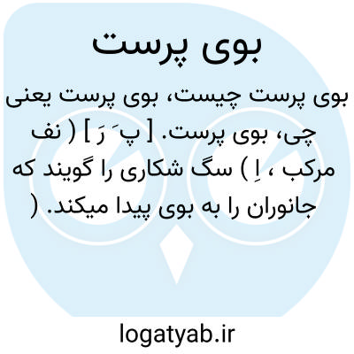 بوی پرست. [ پ َ رَ ] ( نف مرکب، اِ ) سگ شکاری را گویند که جانوران را به بوی پیدا میکند. ( برهان ). سگ شکاری را گویند که کلب المعلم باشدو به بوی، جانوران را پیدا کند و صید کند. و آن را یوزه نیز خوانند. چه یوزه نیز بمعنی جوینده و تفحص کننده باشد. ( آنندراج ). سگی که بوی کرده، جانور را بیابد و بوزه و بوزک نیز گویند. ( رشیدی ). سگ شکاری و کلب معلم. ( ناظم الاطباء ) ( فرهنگ فارسی معین ). || پلنگ. || یوز. ( ناظم الاطباء ). یوزپلنگ. ( فرهنگ فارسی معین ). || کنایه از جن. ( برهان ) ( آنندراج ) ( از ناظم الاطباء ) ( از فرهنگ فارسی معین ). || کنایه از ملک. ( برهان ) ( آنندراج ) ( ناظم الاطباء ). فرشته. ملک. ( فرهنگ فارسی معین ).