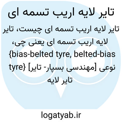 {bias-belted tyre, belted-bias tyre} [مهندسی بسپار- تایر] نوعی تایر لایه اریب با تسمه هایی از رسن (cord )، نخ فولاد یا شیشه که بر روی لایه ها قرار دارند و با خط مرکزی رویه زاویۀ تند می سازند