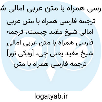 [ویکی نور] ترجمه فارسی همراه با متن عربی امالی شیخ مفید(ره). ترجمه فارسی همراه با متن عربی امالی شیخ مفید(ره)، اثری است متشکل از کتاب «الأمالی» جناب شیخ مفید به زبان عربی و ترجمه فارسی آن به قلم دکتر عقیقی بخشایشی.