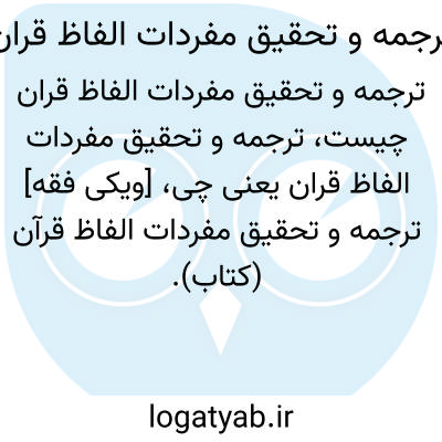 [ویکی فقه] ترجمه و تحقیق مفردات الفاظ قرآن (کتاب). کتاب «ترجمه و تحقیق مفردات الفاظ قرآن»، اثر دکتر غلام رضا خسروی حسینی، ترجمه ای روان و گویا از کتاب «مفردات الفاظ القرآن»، راغب اصفهانی است.