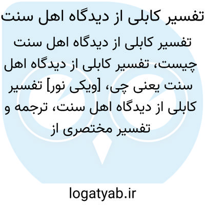 [ویکی نور] تفسیر کابلی از دیدگاه اهل سنت، ترجمه و تفسیر مختصری از آیات قرآن کریم به قلم محمود حسن دیوبندی می باشد. این ترجمه، از زبان اردو به زبان فارسی دری صورت گرفته است.