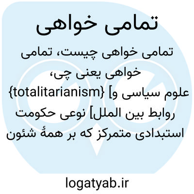 {totalitarianism} [علوم سیاسی و روابط بین الملل] نوعی حکومت استبدادی متمرکز که بر همۀ شئون فردی و اجتماعی کشور تسلط دارد