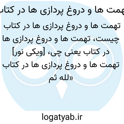 [ویکی نور] تهمت ها و دروغ پردازی ها در کتاب «لله ثم للتاریخ». تهمت ها و دروغ پردازی ها در کتاب «لله ثمّ للتاریخ» تألیف سید مرتضی عسکری و ترجمه محمدجواد کرمی، از جمله آثاری است که در پاسخ به شبهات وارده بر تشیع نوشته شده است.