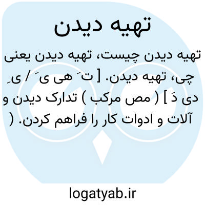 تهیه دیدن. [ ت َ هی ی َ / ی ِ دی دَ ] ( مص مرکب ) تدارک دیدن و آلات و ادوات کار را فراهم کردن. ( ناظم الاطباء ). رجوع به تهیه و ماده بعد شود.