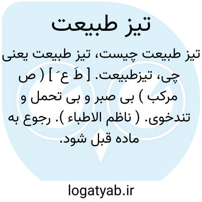 تیزطبیعت. [ طَ ع َ ] ( ص مرکب ) بی صبر و بی تحمل و تندخوی. ( ناظم الاطباء ). رجوع به ماده قبل شود.