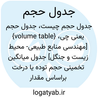 {volume table} [مهندسی منابع طبیعی- محیط زیست و جنگل] جدول میانگین تخمینی حجم توده یا درخت براساس مقدار متغیرهای منتخب که به آسانی قابل اندازه گیری هستند