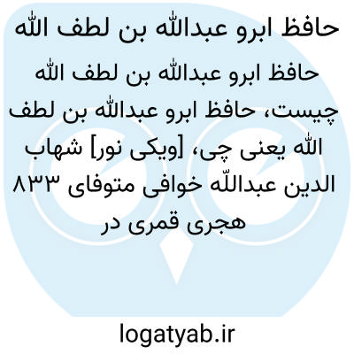 [ویکی نور] شهاب الدین عبداللّه خوافی متوفای 833 هجری قمری در هرات تولد یافت،در همدان علم آموخت و به سال 833 هجری در زنجان وفات یافت.وی از روزگار تیمور جزو رجال دربار بود و به عنوان بازیگر شطرنج نیز شهرت یافت.شاهرخ،نوادۀ تیمور که ضمن سفرهای زمینی ودریایی حافظ ابرو را به همراه خود می برد، او را مورخ رسمی دربار کرده و وظایف علمی مختلف به عهدۀ او گذاشته بود که از آن جمله تألیف یک کتاب جغرافیایی بود که گرچه نام و عنوان آن نامعلوم است، اما دارای اهمیت ویژه است.