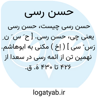 حسن رسی. [ ح َ س َ ن ِ رَس ْ سی ] ( اِخ ) مکنی به ابوهاشم. نهمین تن از ائمه رسی در سعدا از 426 تا 430 هَ. ق. فرمانروایی کرد.