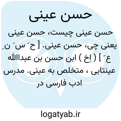 حسن عینی. [ ح َ س َ ن ِ ع َ ] ( اِخ ) ابن حسن بن عبداﷲ عینتابی، متخلص به عینی. مدرس ادب فارسی در استانبول ( 1180 - 1253 هَ. ق. ). دیوان شعر و ساقینامه ترکی و چند منظومه دیگر دارد. ( هدیةالعارفین ج 1 ص 301 ).