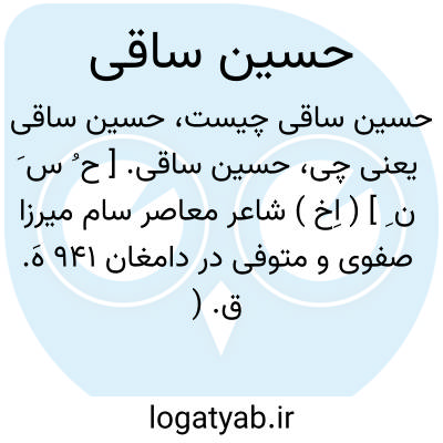 حسین ساقی. [ ح ُ س َ ن ِ ] ( اِخ ) شاعر معاصر سام میرزا صفوی و متوفی در دامغان 941 هَ. ق. ( ذریعه ج 9 ص 497 ).